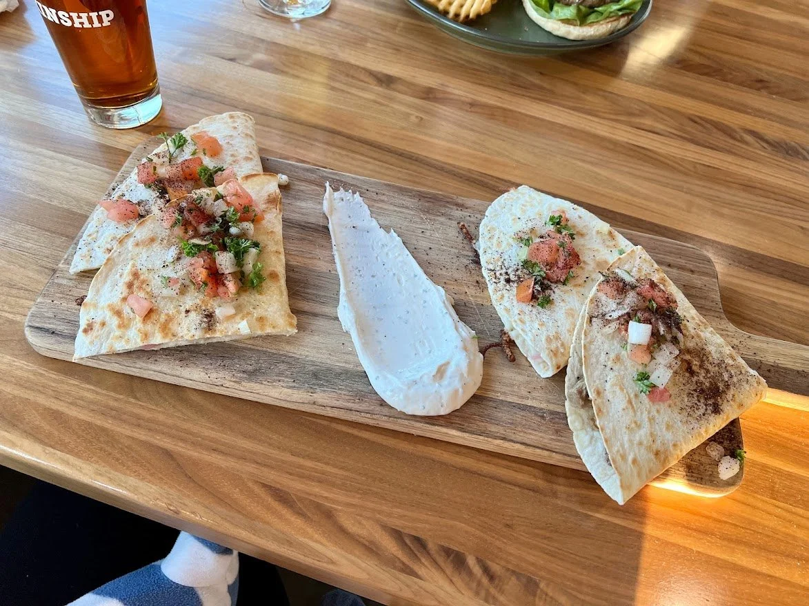 Compared to most other breweries in the area, Kinship had a smaller beer menu with only 8 options. This was a bit surprising to us, considering how large the facility is - but what they do make they actively distribute to the masses. We were told they have a regional partnership with Hy-Vee! Their draft choices included an IPA, doppelbock, imperial stout, Schwarzbier, amber lager, koelsch, and a couple of standard lagers - all of which are constantly on tap.