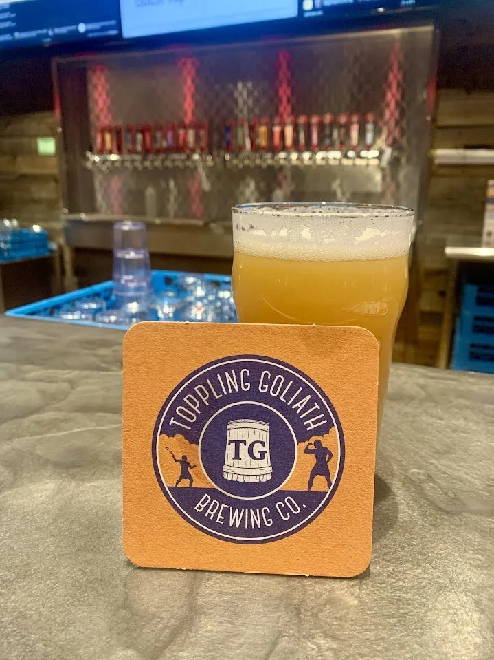 The place almost has more of a restaurant feel to it than a brewery, with its sit-down service and vast food menu featuring salads, burgers, sandwiches, and pizzas. Based on the number of locals enjoying a meal, Toppling Goliath must be one of the better spots in town to grab a bite. We got the chicken bacon ranch wrap and would highly recommend this to anyone! In addition to great beer, they also have a full cocktail menu and a robust selection of seltzers.