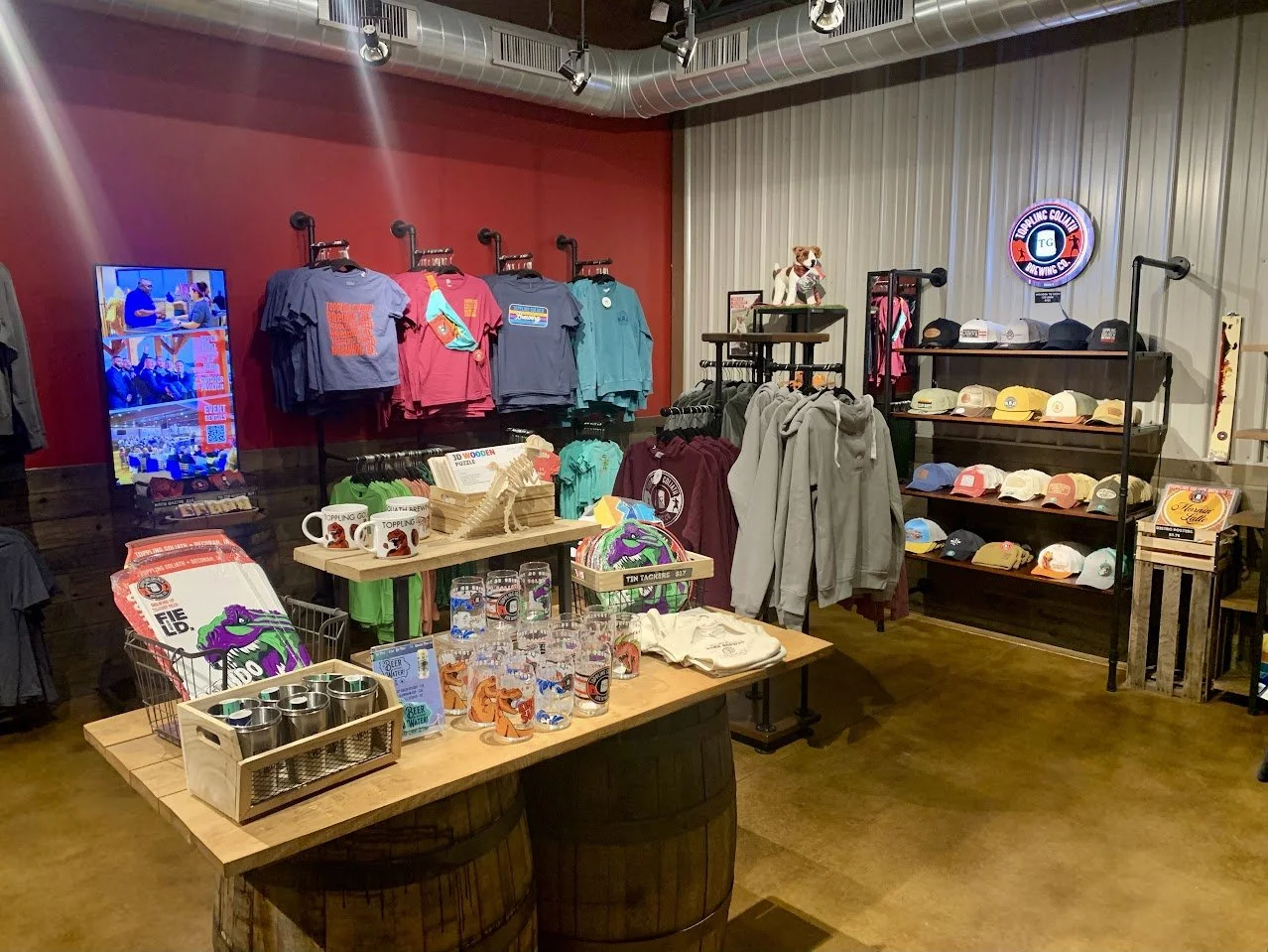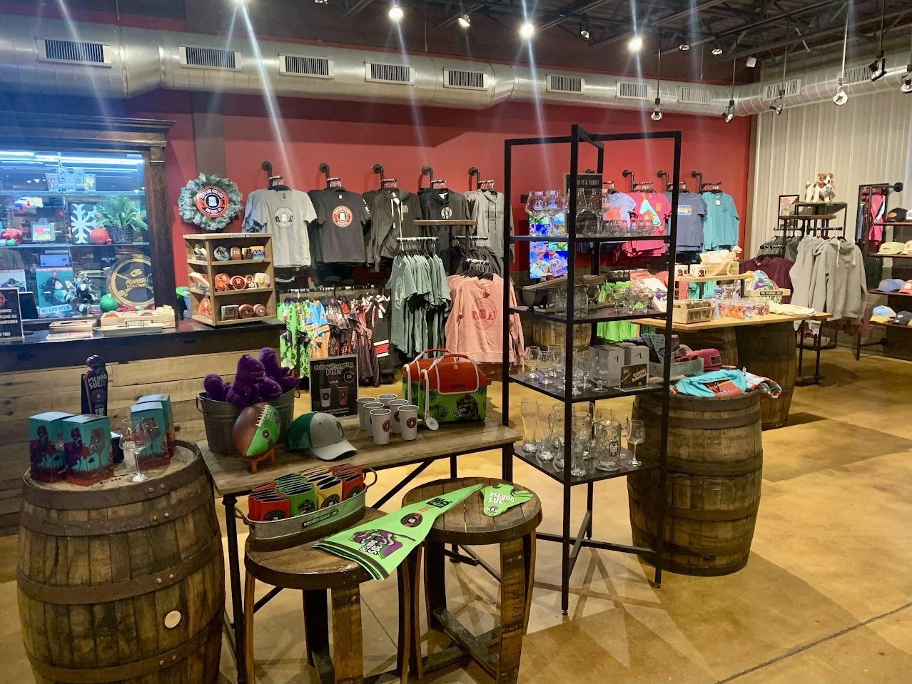 The merchandise section is very robust, occupying an entire side of the space with basic items like shirts, hats, and glassware, as well as more unique offerings like footballs, lunch boxes, and Christmas ornaments. Of course, you can also get their beer to-go, which seemed to be a holiday gift trend for patrons.